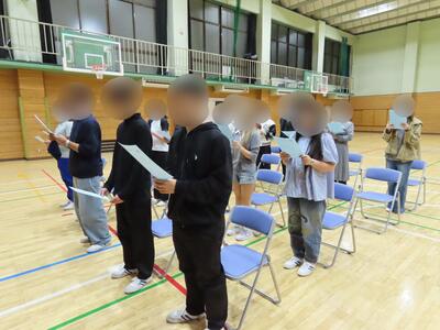 10月15日(水曜) 後期の始業式が行われました。後期はさまざまな行事が予定されており、代表生徒のあいさつからも、その意気込みや決意が強く感じられる内容となりました。 3年生は卒業後の進路に向けて、進学や就職など、それぞれの目標に向かい、自分の将来と真剣に向き合いながら、学習や準備に励んでいます。希望する進路の実現に向けて、仲間や先生方の支えを受けながら、一歩ずつ着実に前進していきましょう。
