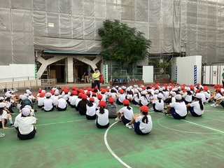 運動会に向けて、練習を頑張っています!写真は、5年生の学年練習初日の様子です。運動会のめあてを全体で共有してから練習に入りました。力強い表現を通して、成長した姿を見せてくれることを期待しています!