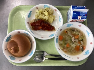 ミルクパン ポテトのミートグラタン たまごいりコーンスープ 牛乳
