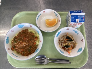 ドライカレーライス かいそうサラダ スイートスプリング 牛乳