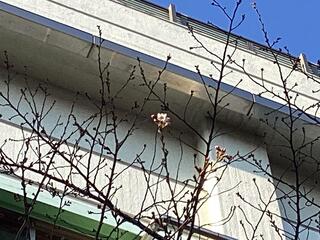 本校正門を入って左側、「王貞治記念碑」裏にある桜の木で、桜の花が開花しました。