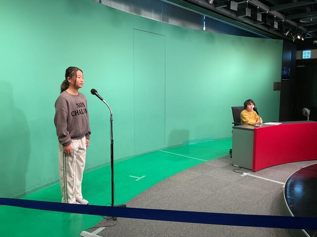 ニュース番組のアナウンサーやお天気キャスターを体験しました。