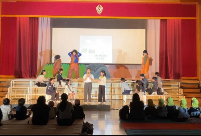 学芸会に向けて声の大きさや体の動かし方を見て学びました。