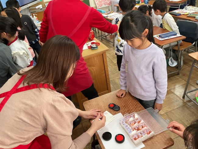 最後に名前の頭文字のはんこを押してもらって、心のこもった年賀状が完成しました。