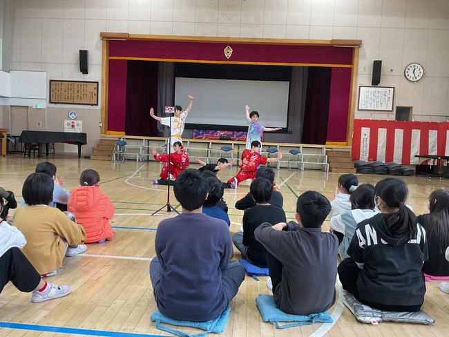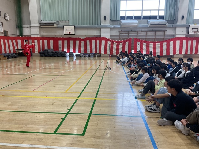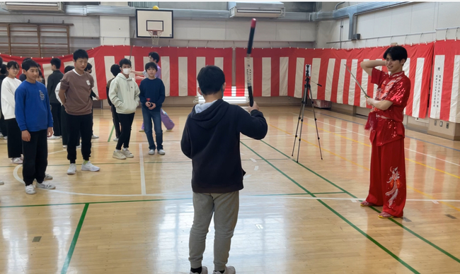 6年生は武術太極拳の出前授業がありました。TFA長拳隊の方々に来ていただき、様々な種類の武術太極拳を見させてもらえました。
