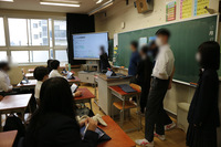 本校は、Apple Distinguished SchoolとしてiPadを使った授業改善を進めています。その一環として、10月16日にApple Open Dayを開催しました。1学年では、英語・社会・家庭科・保健体育の授業を公開しました。生徒たちは自らの考えを言語化し、他者と共有する経験を重ねることで、学びへの意欲を高めています。また、これからの学びに向けた新たな試みとして、2・3年生合同による数学の授業を実施しました。異なる学年が協働することで、多様な視点や理解の深まりが生まれ、互いに刺激を受けながら学び合う姿が見られました。
