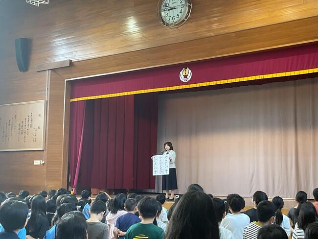 「やさしい子」「かんがえる子」「たくましい子」について校長先生からお話があり、後期からの態度についてみんなで考えました。