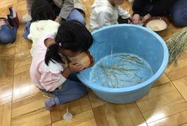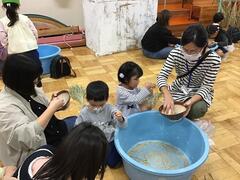 十分に乾燥させた稲から実を外し、すり鉢でもみ殻を外していきます。