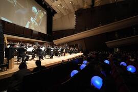 スクリーンに映し出される映像では、なかなか見ることができない演奏の様子も間近にみることができました。