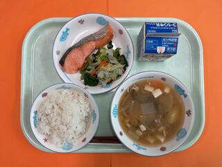 9/3 ごはん 鮭の塩焼き おひたし 豚汁 牛乳
