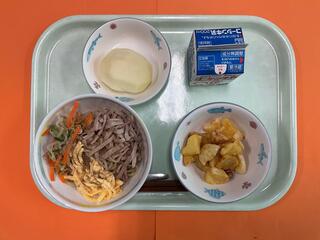 9/9 冷やし中華そば スパイシーポテト くだもの(りんご) 牛乳