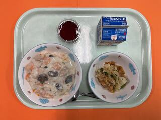 9/10 えびクリームライス ひよこ豆入りサラダ ぶどうゼリー 牛乳