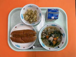 9/16 カレービーンズホットサンド コーン入り野菜スープ のり塩ポテト 牛乳