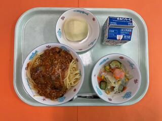 9/17 スパゲティなす入りミートソース コーンサラダ くだもの(りんご) 牛乳