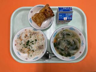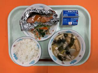 10/1 ごはん 鮭のしょうが焼き からしあえ みそ汁 牛乳