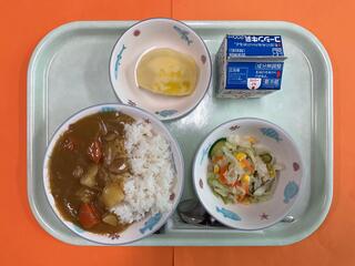 10/2 カレーライス フレンチサラダ くだもの(りんご) 牛乳