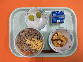 10/3 冷やしラーメン ビーンズスパイシーポテト くだもの(シャインマスカット) 牛乳