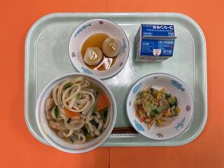 10/6 鶏南蛮うどん ごまだれサラダ 月見団子 牛乳