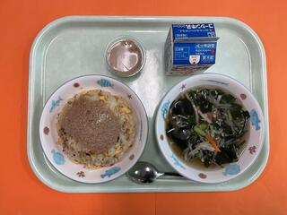 10/9 坦々チャーハン 中華風スープ カフェオレゼリー 牛乳
