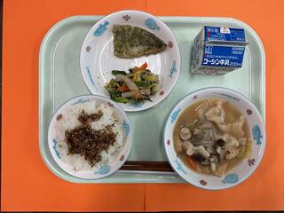 10/27 ごはん ぶりの香味焼き すろっぽ きのこのかきたま汁 牛乳
