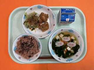 10/17 赤飯 鶏のからあげ 土佐和え すまし汁 牛乳