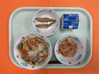 10/24 五目焼きそば バンサンスー わかさぎのからあげ 牛乳