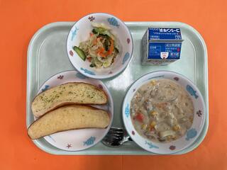 10/29 二色フランス コーンシチュー 野菜サラダ 牛乳