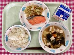 今日はご飯に良く合う銀鮭を焼きました。銀鮭は脂がのっていて身が柔らかいのが特徴です。今日は特に鮭がおいしい!とたくさんの感想をもらうことが出来ました。おかげでご飯も空っぽのクラスが多かったです。
