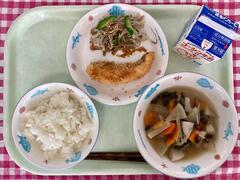 今日は鯖にピリ辛のたれをかけてご飯に合うおかずにしました。お魚と白いご飯のセットが好きな児童も多く、高学年では「魚もっと食べたい!」との声ももらいました。いろいろな魚を食べてもらえるように給食でも工夫していきます。