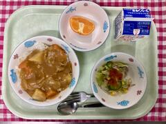 3月は6年生のリクエスト給食で人気のあった献立をなるべく取り入れています。カレーライスもリクエストがありました。給食のカレーライスはなぜかおいしく感じますよね。果物は沖縄県や鹿児島県で多く栽培されているたんかんという品種です。