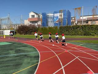 体育学習発表会では、1年生は直線のコースを走ります。まっすぐ自分のコースを走る練習をしていますが、まだ自分のコースをはみ出してしまう児童もみられます。前を向き、ゴールを目指して最後まで走りきれるよう、指導しています。当日は、応援よろしくお願いします。