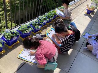 生活科の授業でアサガオを育てています。5月に種を植えてから、芽や葉の観察を行いました。すくすく成長するアサガオの様子を見て、喜びを分かち合う児童の姿があります。愛情をもって関わり、毎日欠かさず水やりをする姿は大変素晴らしいです。「どんな花が咲くのかな。」とこれからの成長を楽しみにしています。