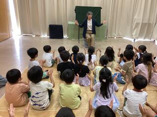 日本の昔話、アメリカのお話、紙芝居、わらべうたなどを聞かせてくださいました。いつものじゃんけんとは違うお天気じゃんけんをしたり、リズムに乗って言葉遊びをしたりして楽しむ姿が見られました。
