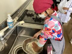 実際にお米がどのように炊けるのか、中身が見えるお鍋で調理実習を行いました。