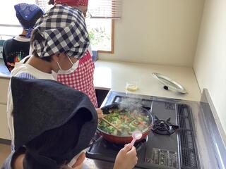 野菜を切るなどの分担をし、一人一人が役割を果たそうと頑張っていました。
