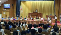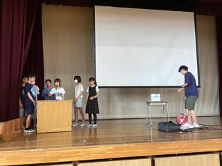 法案が提出され、委員会や参議院などで審議・採決されて法律が制定するまでを、児童の代表による劇で体験することができました。