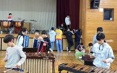 音楽づくり「つながり」では木琴・鉄琴やトーンチャイムを使って、即興的に音楽をつくります。
