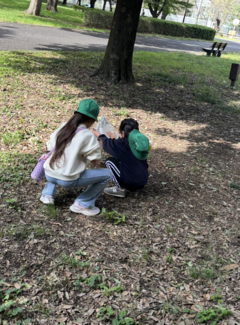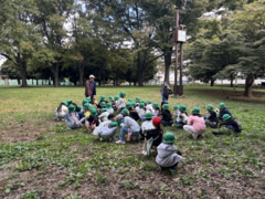 1年生が生活科の学習で白鬚公園に行き、どんぐり拾いをしました。