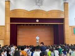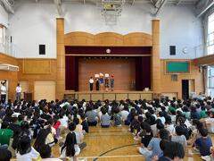 夏休み前最後の登校日でした。朝会では、校長先生が夏休みの過ごし方についての話がありました。
