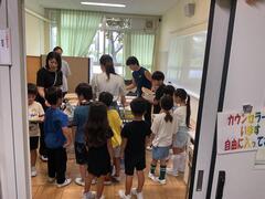 「ここは図工の授業をする場所だよ!」「ここにはケガをしたら来るんだよ!」と優しく教えてあげる2年生と、各部屋を目をキラキラさせながら見学する1年生の姿が見られました。