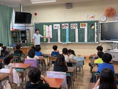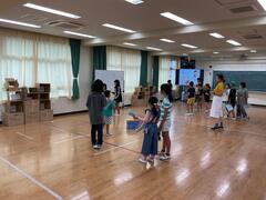 自己紹介をした後は、教室で椅子取りゲームやなんでもバスケットなどをして楽しみました。