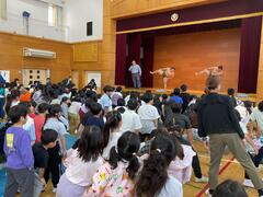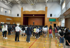 体育館にて「1年生を迎える会」が行われ、在校生たちが心をこめて準備した出し物や、手作りのプレゼントで1年生を歓迎しました。それぞれが役割を分担し、1年生に「ようこそ梅若小学校へ!」という気持ちを伝える温かな時間となりました。