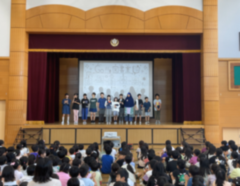 前期終了の日を迎えました。2年生、4年生の児童が代表で前期頑張ったことを発表できました。