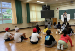 今年度も、校長先生が紙芝居の読み聞かせをしてくださいました。今回のお話は、落語の「ぞろぞろ」でした。お話が始まると集中して聞いている子供たちの姿が印象的でした。紙芝居の仕組みにも興味をもった子供たちが、校長先生に仕組みを教えてもらっている姿もほほえましかったです。