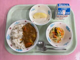 10月20日(月) 「有機野菜給食」 牛乳 有機野菜のカレーライス コーン入り和風サラダ りんご