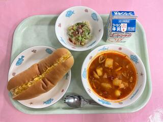 10月1日(水) 牛乳 カレーミートサンド 秋のシチュー フレンチサラダ