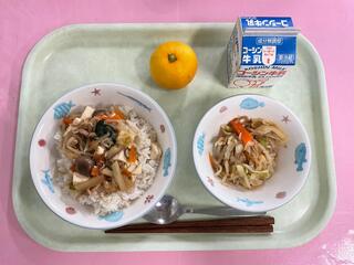 10月30日(木) 牛乳 豆腐のうま煮丼 もやしとツナの和え物 みかん