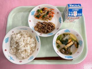11月12日(水) 牛乳 麦入りご飯 豚肉のしょうが焼き もやしのごま和え 吉野汁