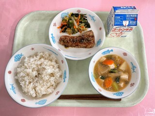 11月21日(金) 「和食の日献立」牛乳 麦入りご飯 鰤の醤油揚げ 白菜のさっぱり和え じゃがいものごまみそ汁