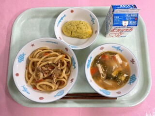 11月25日(月) 「三重県郷土料理」 牛乳 亀山みそ焼きうどん あおさ入りみそ汁 スイートポテト